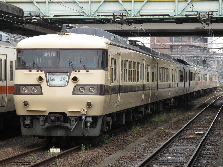 この日も朝のラッシュ運用に就いていたらしく、東海色の117系と連結された8両編成の状態で留置されていました。