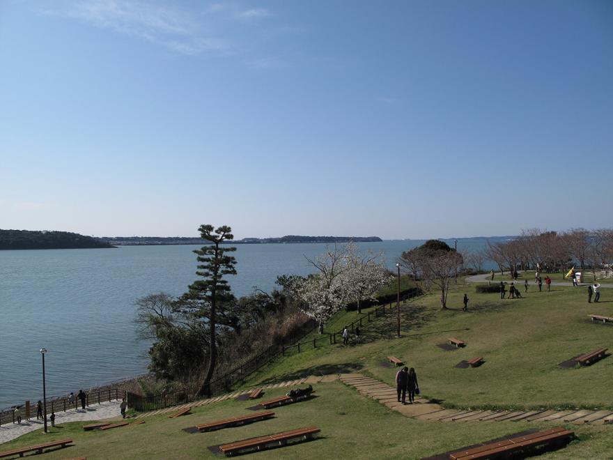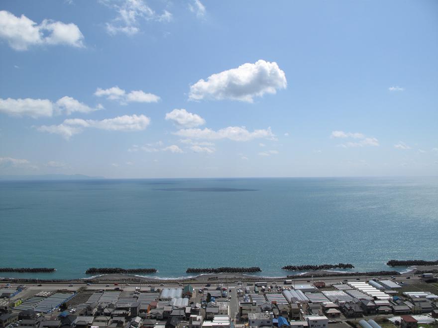 その一番上の東照宮入り口から見た太平洋の絶景。天気は良かったのですが、生憎雲が多かったために富士山は終始見えませんでした・・・。