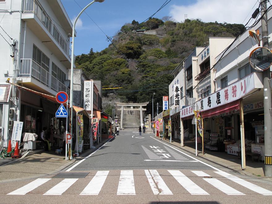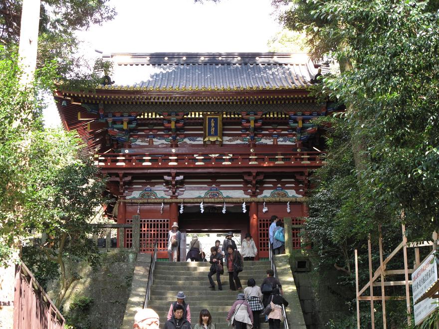 イチゴ狩りをした後は近くにある久能山東照宮へ。写真の鳥居から上に見える入り口まで1000段近くある石段を上りました。