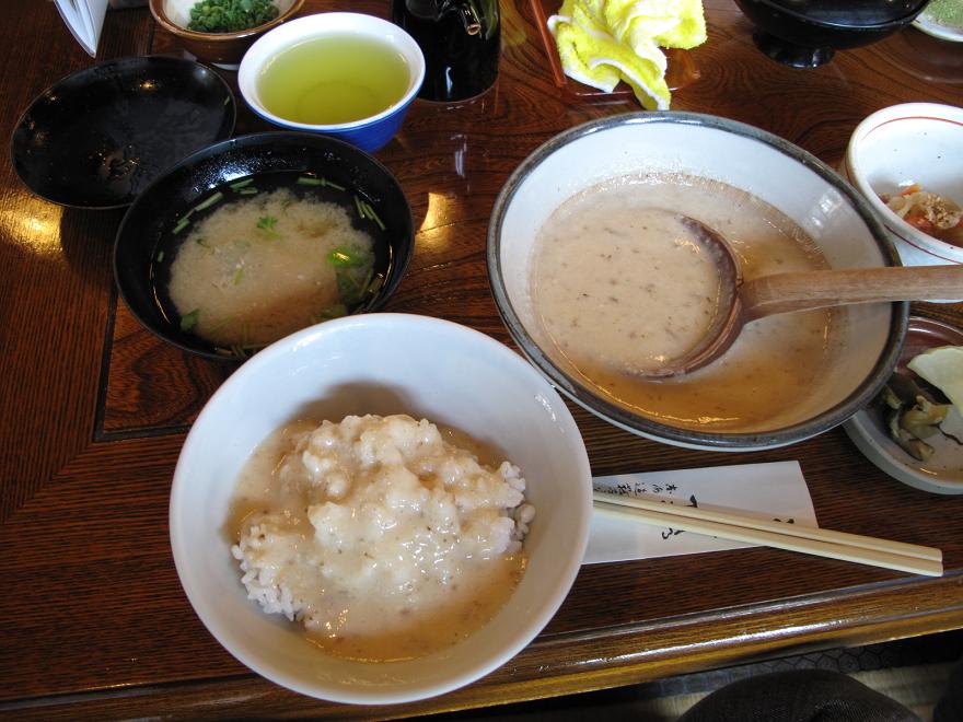 こちらがとろろ汁の定食です。うまい!の一言でしか言い表せません。値段は¥1200ぐらいだったと思いました。左に見える味噌汁には畳イワシが入って味噌汁がなお美味しく感じます。