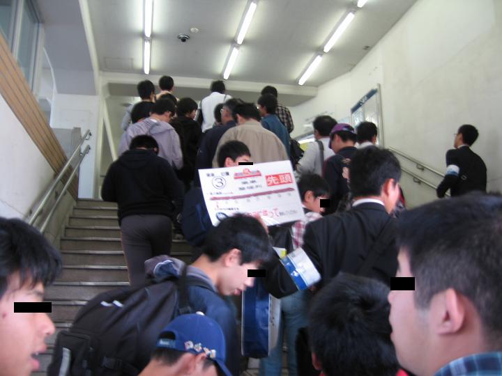 ハンディを考えて、朝に三重を出たのではもしかしたら立ち席になってしまうのではと思い、おもいきって徹夜組に混じりました。人生初の徹夜でごぜぇます。しかし夜は寒いし、なかなか寝付けないなど散々な経験をしてしまったんですが・・・。まあこんな経験も学生の内